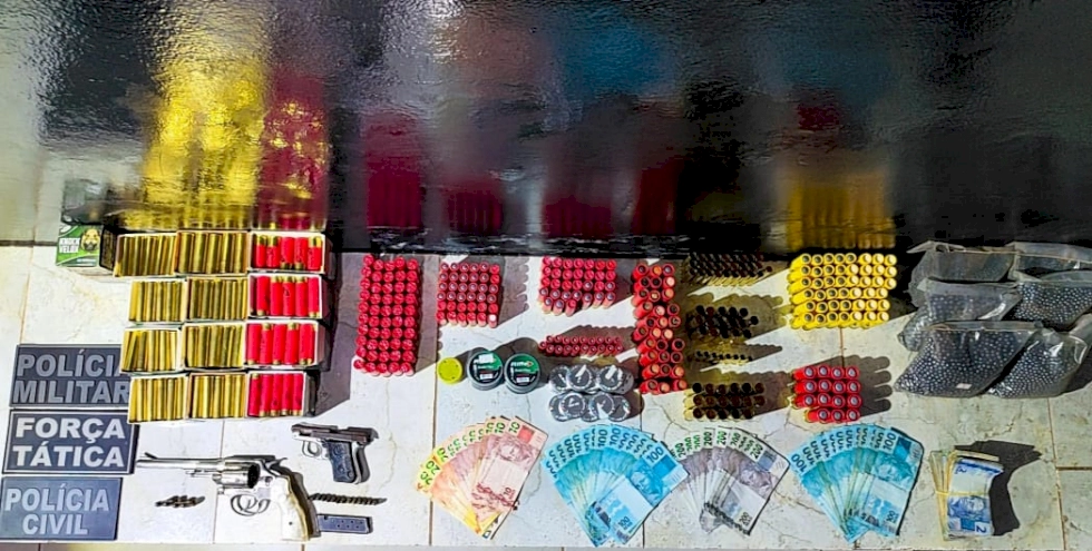 Na última sexta-feira (16), uma ação conjunta entre a Polícia Militar de Deodápolis, a Força Tática do 14º BPM de Fátima do Sul e a Polícia Civil de Deodápolis resultou na apreensão de uma grande quantidade de munições, armas, pneus, cigarros e materiais utilizados para a preparação de munições de armas de fogo. Também foram apreendidos fogos de artifício, bombas (bombinhas) e uma quantia significativa em dinheiro.