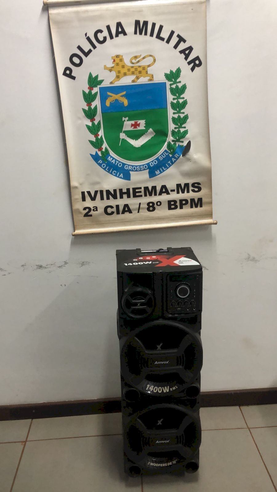 IVINHEMA: Polícia Militar atende ocorrência de perturbação do sossego e apreende caixa de som