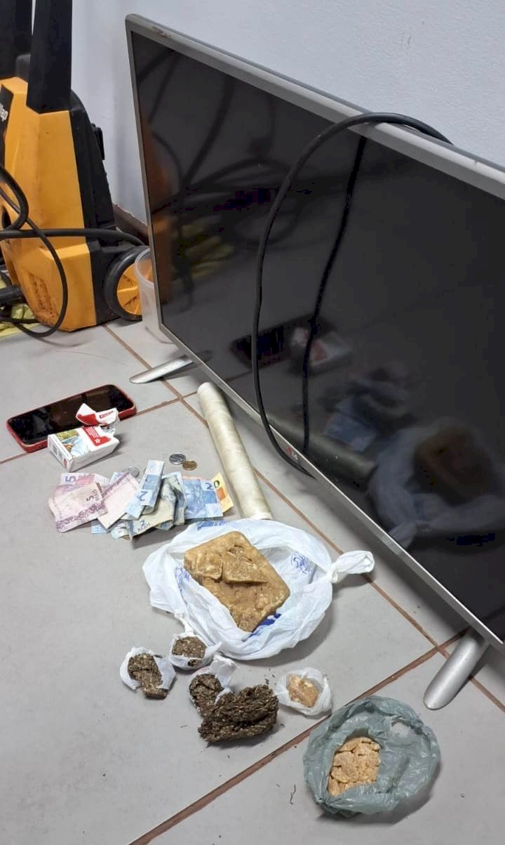 Além das drogas, os policiais apreenderam uma balança de precisão, rolos de papel filme, R$ 144 em notas diversas e trocadas, além de uma televisão de 32 polegadas, uma lavadora de alta pressão e um aparelho celular. Conforme a ocorrência, o suspeito não teria informado a procedência lícita desses objetos.