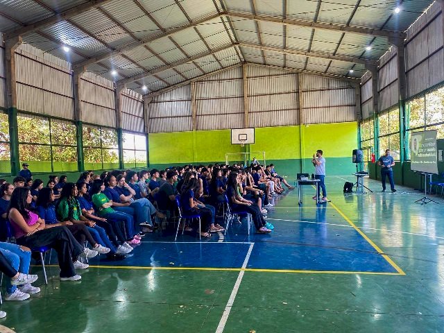 Outra atividade realizada na escola, por meio do Projeto Técnico Social, abordou “A importância da reciclagem”, com apoio da Associação de Catadores. Os estudantes participaram de palestra, apresentação teatral e orientações sobre economia de água, além de uma campanha de arrecadação de materiais recicláveis. Na ocasião, a equipe socioambiental também apresentou informações sobre o sistema de esgotamento sanitário implantado recentemente em Ivinhema, que passou de cobertura zero para mais de 80%.