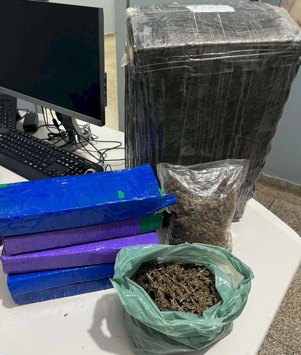 No interior da casa, foram encontrados 28 tabletes de maconha, totalizando 32,990 quilos, duas porções de skunk de 475 gramas, uma balança de precisão e documentos ligados ao suspeito. A droga estava distribuída pela sala e até dentro de uma geladeira.