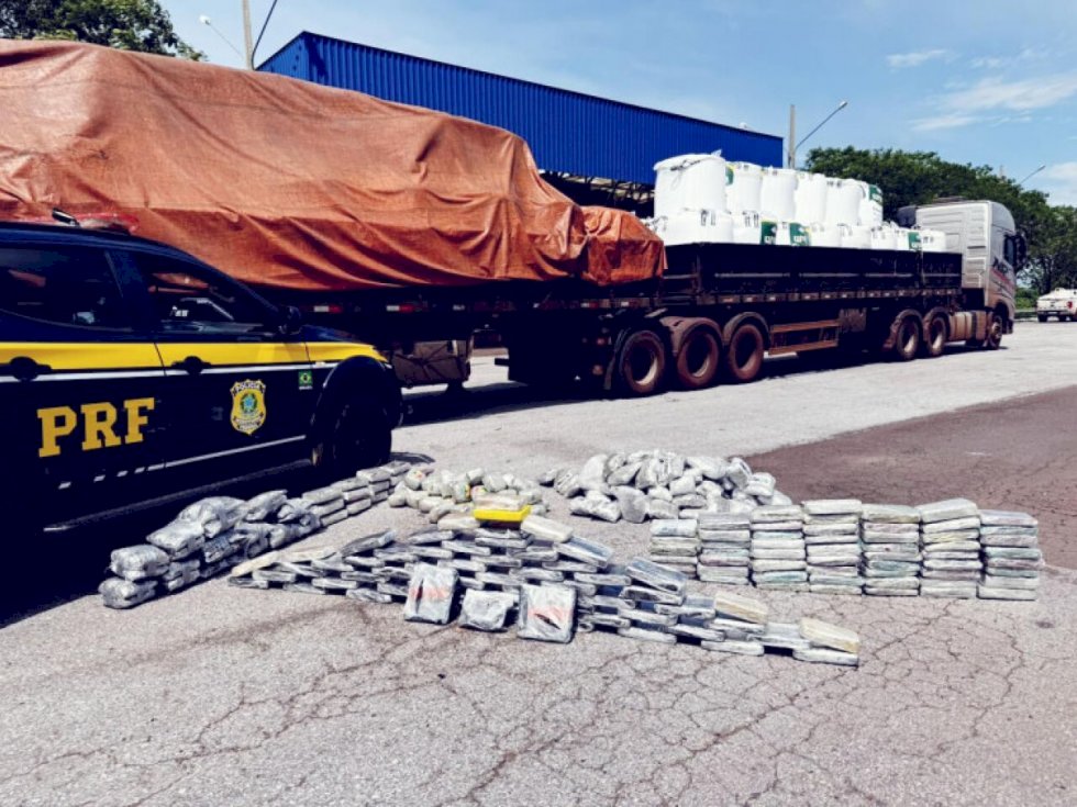 Durante a vistoria, os agentes solicitaram que o motorista retirasse as lonas dos semirreboques para conferência do material transportado e possível verificação de excesso de peso. No entanto, ao abrir um dos compartimentos, a equipe identificou seis grandes fardos com características distintas da ureia declarada.
