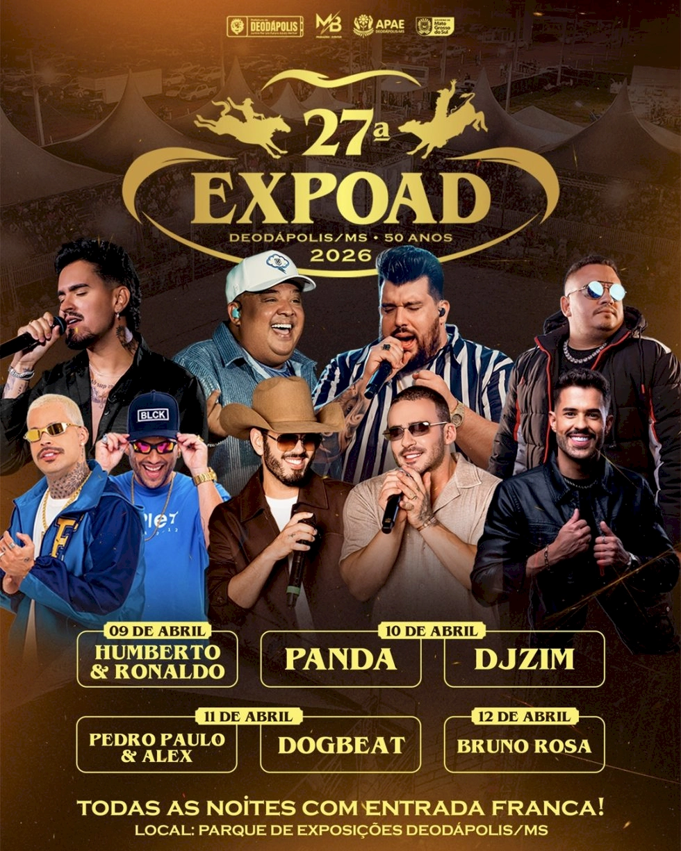 A 27ª EXPOAD promete entrar para a história como a maior edição já realizada, reunindo tradição, música, rodeio e celebração em um momento especial para toda a população. A festa marca os 50 anos de Deodápolis, fortalecendo o orgulho e a identidade de um município que valoriza suas raízes e tradições.
